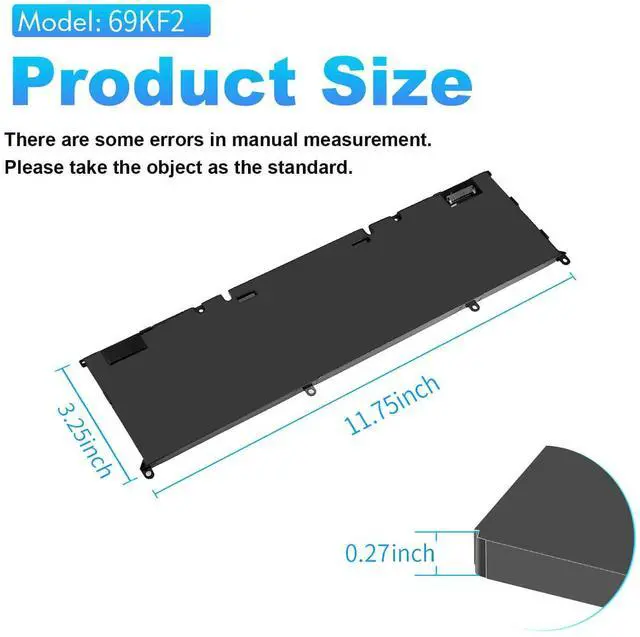 | Specifications: | Voltage: 11.4V; Capacity: 86Wh; Cells: 6-cell; The package also includes 1pcs 69KF2 battery, 2pcs screwdrivers, and 1pcs instruction; Ships from US Warehouse; Full refunds are available for any reason within 60 days of purchase; If it becomes defective within one year of your purchase, we offer a free exchange |