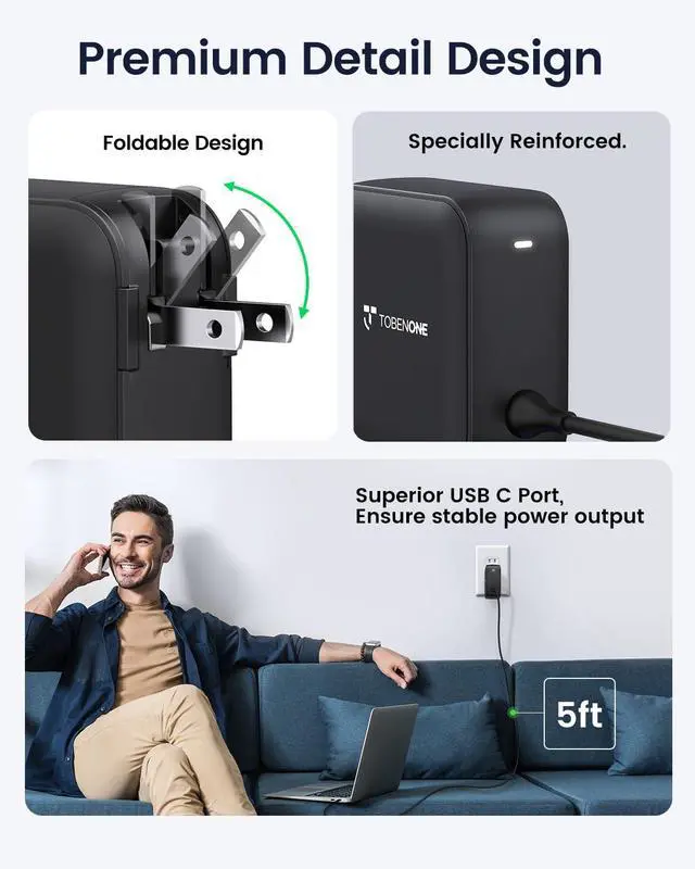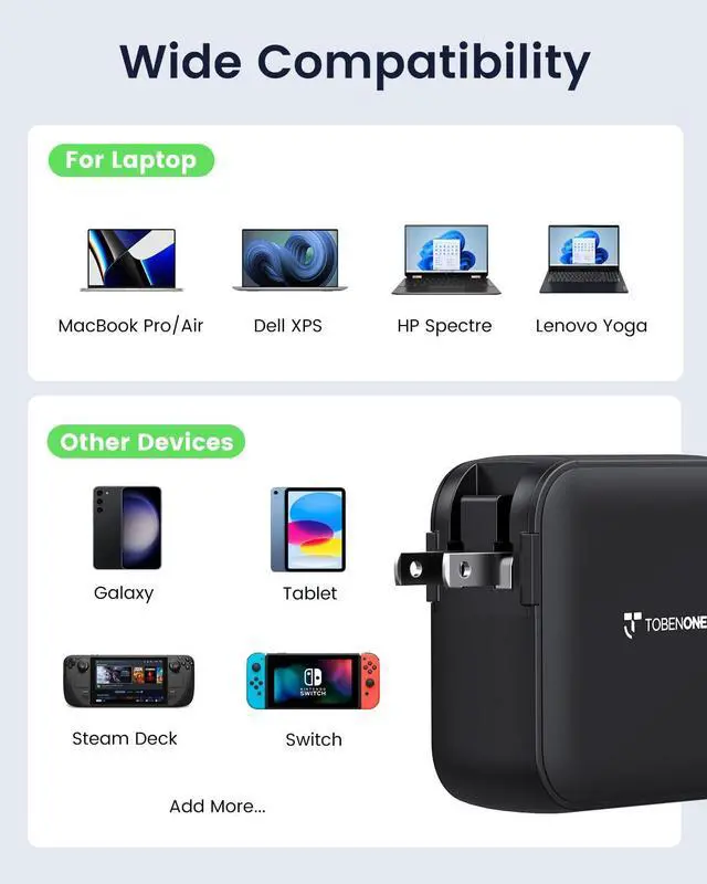 2. Built-in smart and intelligent chip, the 100W power adapter protects your laptop or cellphone from overload voltage/current, short current, and high temperature, charging safer.