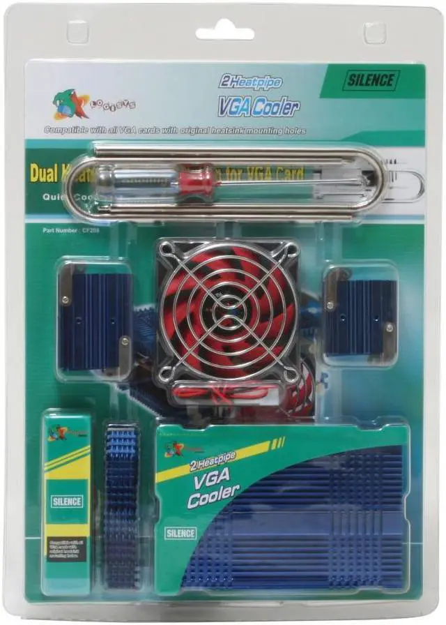 | Features | Weight; 482g Heatpipe: U heatpipe 2 pcs Heatsink material: AL 6063-T5 Dissipation Area: 1200cm2 VGA RAM Heatsink Material: AL 6063-T5 VGA RAM Heatsink weight: Frontside 3.0g Backside 1.2g This product cannot be installed on NVIDIA GeForce 6800 GT and 6800 Ultra,NVIDIA GeForce 6600 GT AGP, 6600 AGP, and PCX 5*** series products. |