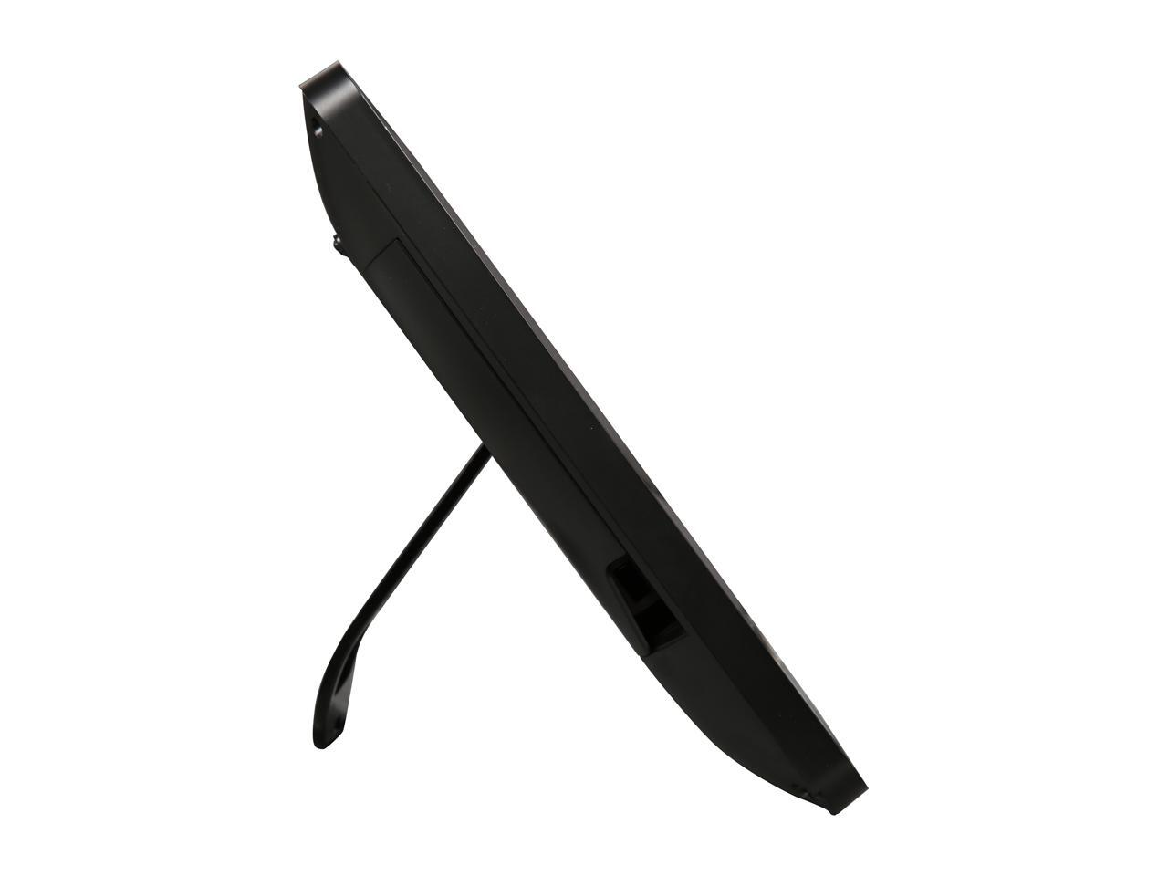 - Freestanding tablet design with muted black finish, stable adjustable stand, and 7H scratch resistant surface
