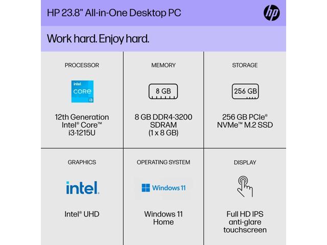 HP 24-cb1023w 23.8" FHD Touch All-in-One PC Intel i3-1215U 8GB 256GB W11H