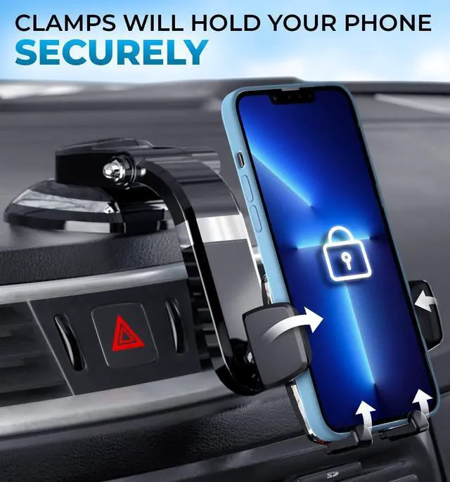 SmartClamp Car Phone Mount | Dashboard Cell Phone Car Phone Holder Compatible with iPhone 13 12 11 Pro, Xr, Xs, XS MAX, XR, X, Galaxy S20 Note 20 Ultra & All Smartphones