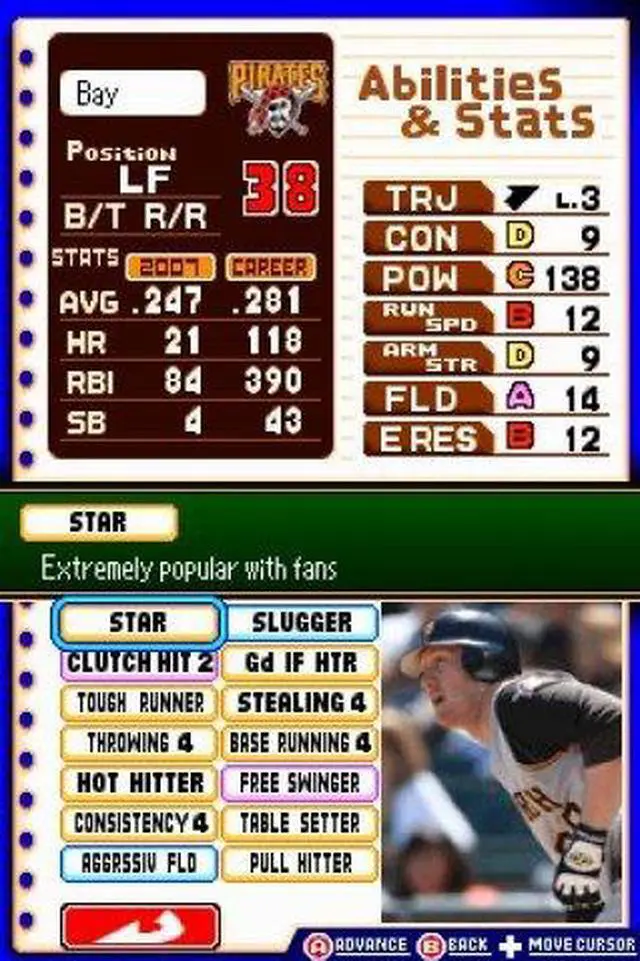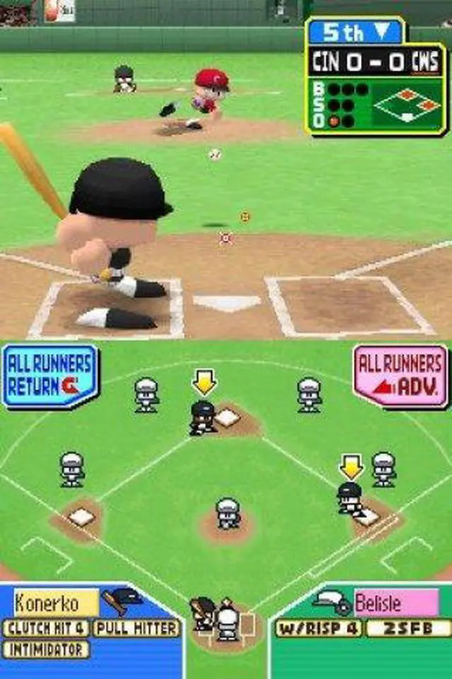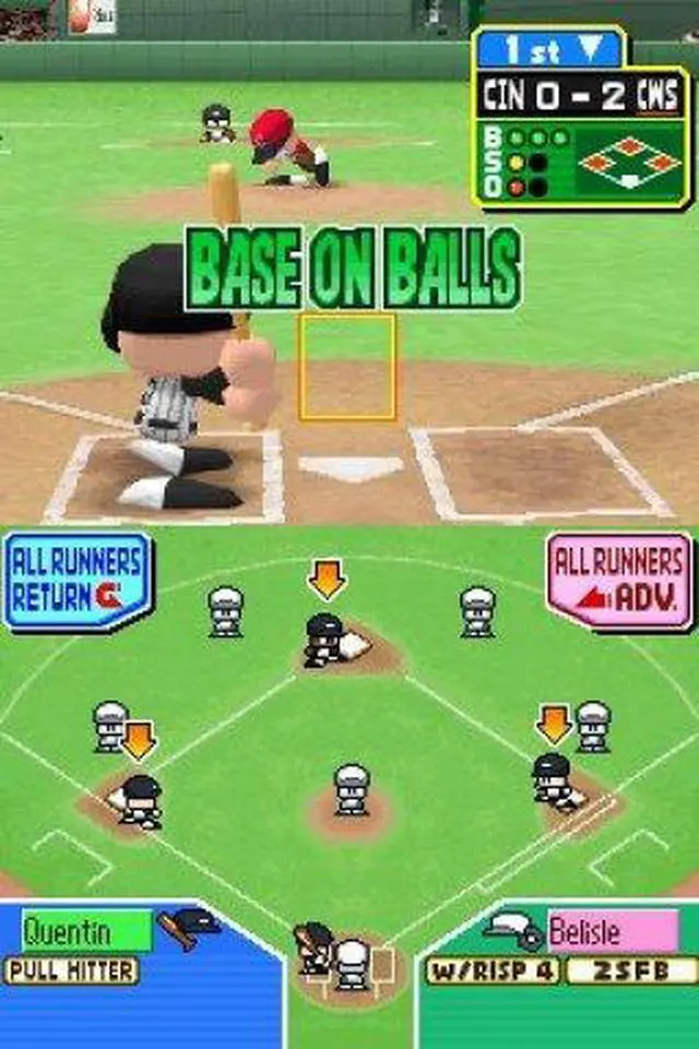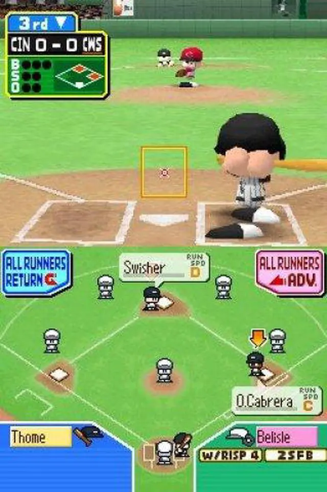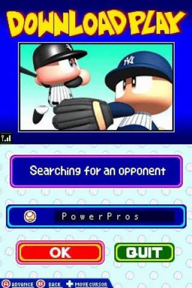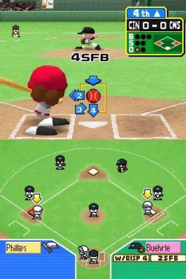 | Features | Matchup Mode - Play a one-off match against the CPU or another player. Playoffs Mode - Re-create the MLB playoffs with this tournament mode. Home Run Challenge - Hit as many home runs as you can in the span of 10 pitches. Practice Mode - Learn the basics. Wireless Play - Compete against another player using DS Wireless. Download Play - Compete against another player using only one Game Card! |