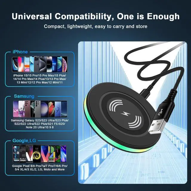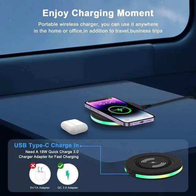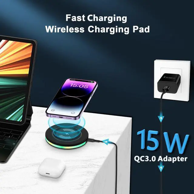 15W Samsung Wireless Charger with QC 3.0 AC Adapter for Samsung