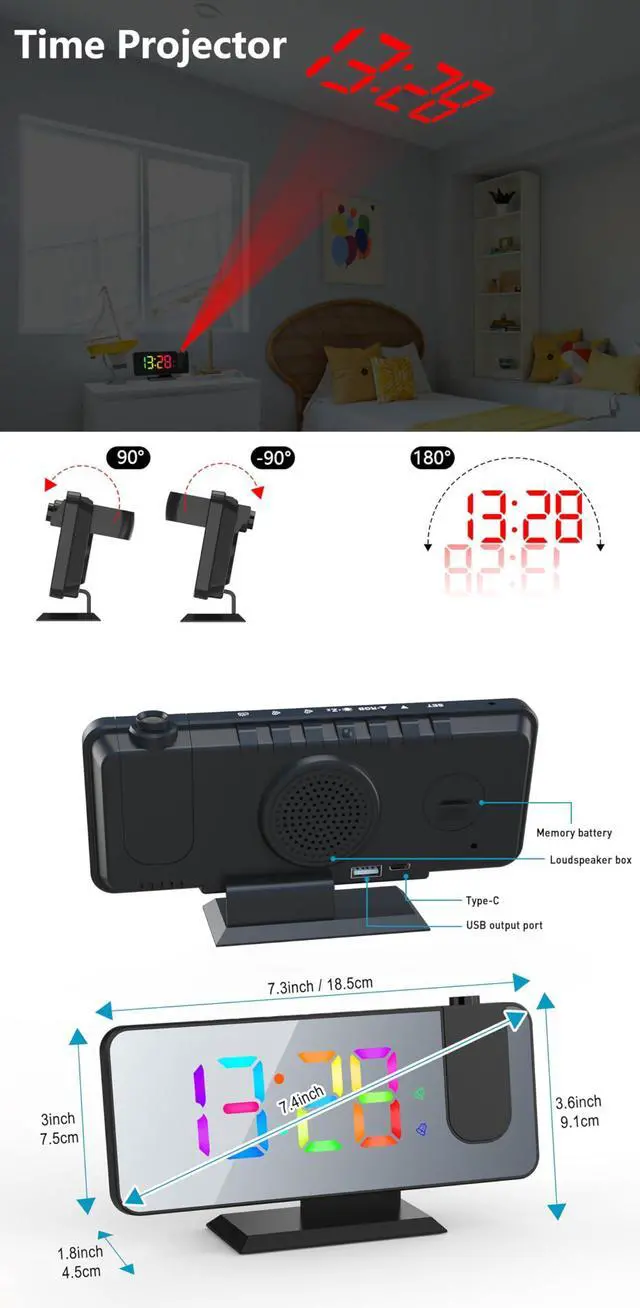 | Special Feature | Adjustable Brightness, Alarm, Charging Port, Double Bell, Projection Clock |
