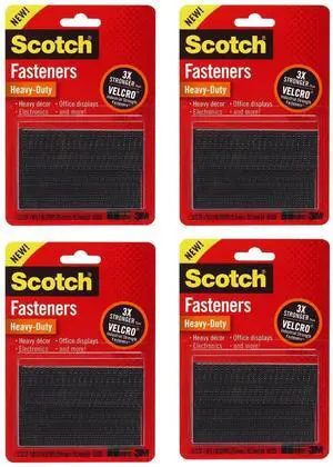 3M Scotch HeavyDuty Fasteners, 8 Sets of 1 Inch x 3 Inches Strips, Black, 4 Pack RFD7091