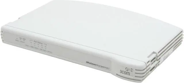 | Features | Status and collision LEDs simplify monitoring MDI/MDIX port provides simple connection to another 3com OfficeConnect hub or switch, or server or PC Small footprint conserves space; one-piece clipping system makes expansion easy Sleek, ergonomic design features a clear front-panel display for easy troubleshooting External power supply and self-cooling design eliminates need for a noisy fan |
