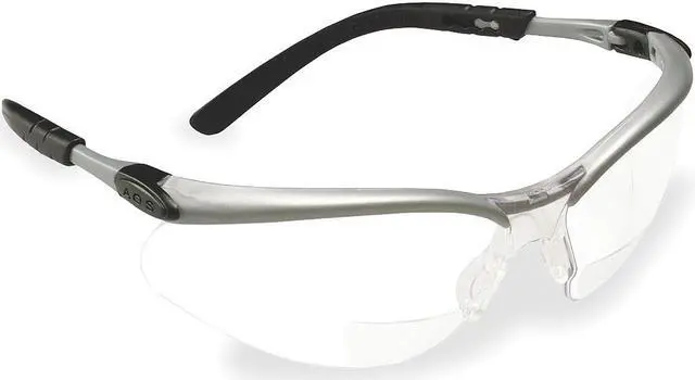 Bifocal Safety Reading Glasses, + 1.50 Diopter Strength, Clear Lens Color, Anti-Fog Lens Coating, Wraparound Eyewear Frame Design, Black/Gray Frame Color, Polycarbonate Frame Material, Polycarbonate Lens Material, Silver/Black Temple Color, Adjustable Temple Style, 0.999 UV Protection, Eyewear Venting Non-Vented, X-Ray Detectable No, Includes Adjustable temple length, lens angle, and nosebridge, Standards ANSI Z 87.1 -2003, CSA Z 94.3 -2002, Eyewear Frame Style Half-Frame, Eyewear Size Universal. This item has been restricted from sale in the following state (s): []