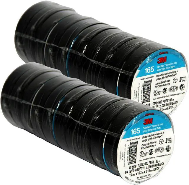 3M Temflex Vinyl Electrical Tape 165 Multi-purpose 3/4" X 60FT Black 20 Rolls