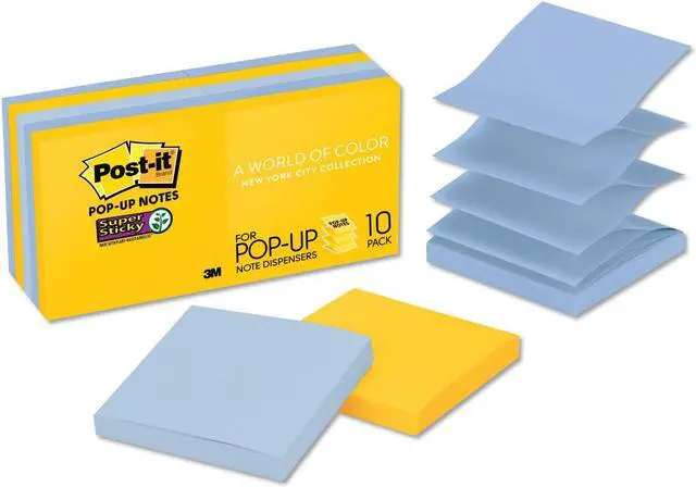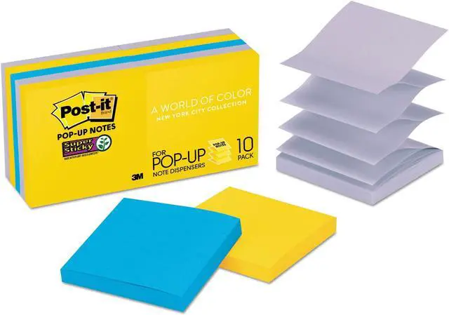 3M R33010SSNY Post-it Super Sticky Pop-up Notes, New York Color Collection, 10 Pads / Pack, 90 Sheets / Pad