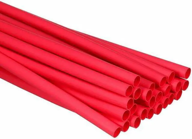 Heat Shrink Tubing, Thin Wall, Material Polyolefin with Adhesive, Flexible, Flame Retardant Yes, Adhesive Lined Yes, Shrink Ratio 3:1, Use With Wire Size 6 AWG to 1 AWG, I. D. Before Shrinking 0.5 in, I. D. After Shrinking 0.16 in, Wall Thickness After Shrinking 0.03 in, Length 6 in, Shrink Tubing Properties Abrasion-Resistant, Acid and Alkali-Resistant, Color Red, Temp. Range -67 Degrees to 230 Degrees F, Package Style Individual Pieces, Min. Shrink Temp. 250 Degrees F, Dielectric Strength 600 V.