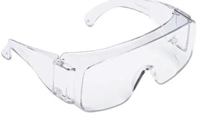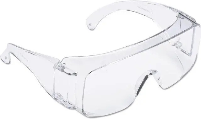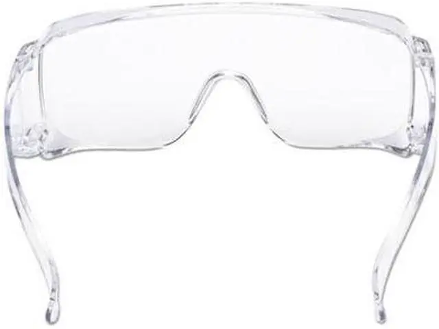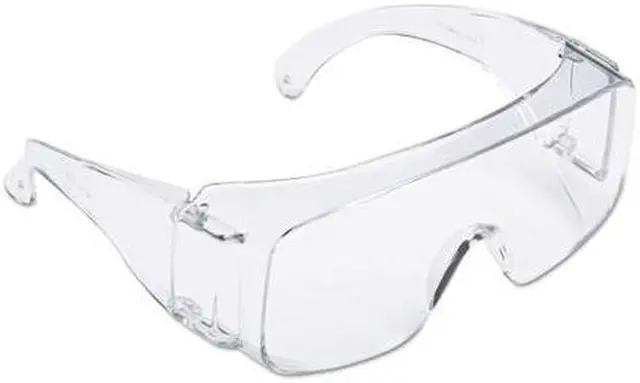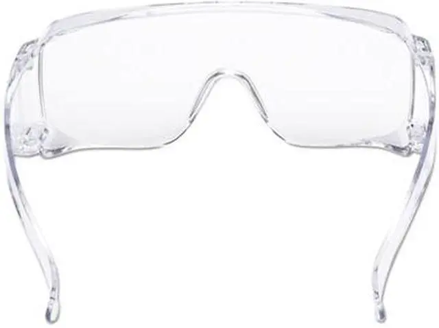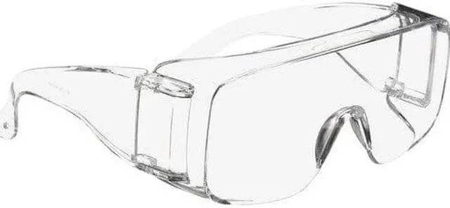Economical protection ideal for visitors and whole crews. Clear lens and frameless design fits over most personal prescription eyewear. Polycarbonate lenses absorb 99.9% UV. Wraparound DesignWall-mountable dispenser box for easy access. Style: Frameless; Frame Color: Clear; Frame Material: Polycarbonate; Lens Material: Polycarbonate.