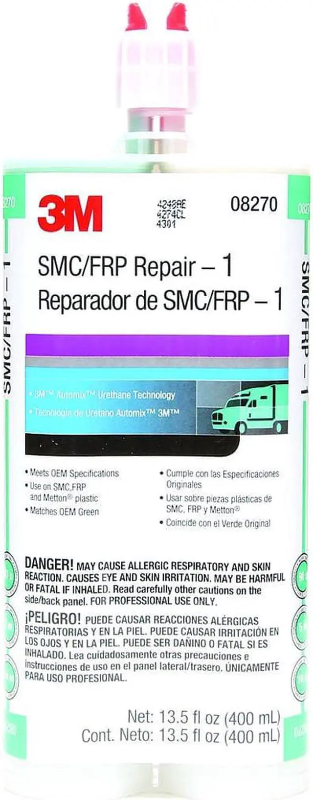 California Proposition 65: This product contains a chemical known to the State of California to cause birth defects or other reproductive harm. Application Family Fleet and Vehicle, Materials Bonded Fiberglass, Metal, Plastic, Size 400 mL, Begins to Harden - Adhesives 1 min, Full Cure Time - Adhesives 24 hr, Cured Color Family Greens, Green, Chemical Base Urethane, Application Temp. Range -40 Degrees to 176 Degrees F, VOC Content 0 Percent, Container Type - Adhesives Dual-Cartridge, Viscosity 600, Container Size - Adhesives 13.5 oz, Specific Gravity 1.28, Flexible, Sag Resistance, Fiberglass Repair Adhesive, Two Part Urethane. This item has been restricted from sale in the following state (s): []