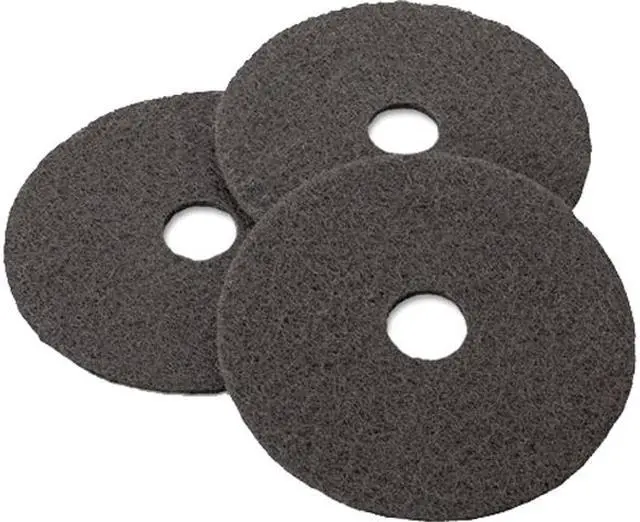 Provide greater initial cut and offer high performance throughout the life of the pad. Coarse fibers and abrasives provide aggressive stripping performance, removing two to three layers of old finish. The web of fibers is permeated throughout with a uniform coating of resin and abrasive mineral particles, consistently delivering impressive cut over the life of the pad. The pad's open-textured, non-woven construction resists clogging, allowing stripping solutions to flow through the pad. They can also be used with appropriate chemicals to clean heavily soiled hard-surface floors such as concrete. Application: Stripping; Diameter: 17"; Height: 3/4"; Color(s): Black.
