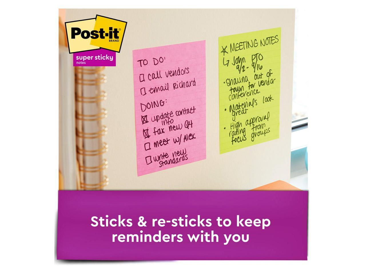3M 66024SSMIACP Super Sticky 4" x 6" List Notes, Rectangle, 45 Sheets per Pad, Multicolor, Sticky, 24 / Pack