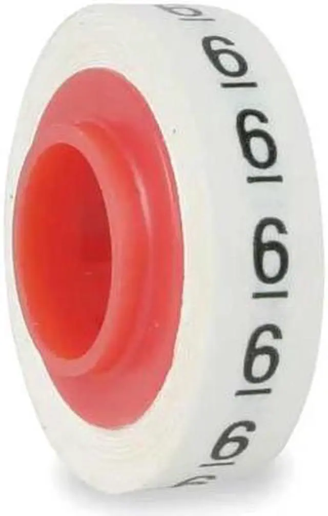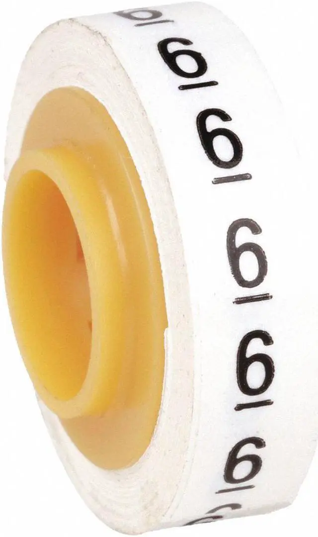 Wire Marker Tape Refill, Preprinted, Legend 6, Color Black on White, Temp. Range -40 Degrees to 250 Degrees F, Label Width 0.22 in, Label Height 0.003 in, Marker Attachment Style Self-Adhesive, No. of Labels 576, Label Material Polyester Film, Background Color White, Legend Color Black, Uses Dispenser Mfr. No. STD, Rolls per Legend 1, Fits Wire Dia. 6/0 to 24 AWG. This item has been restricted from sale in the following state (s): []