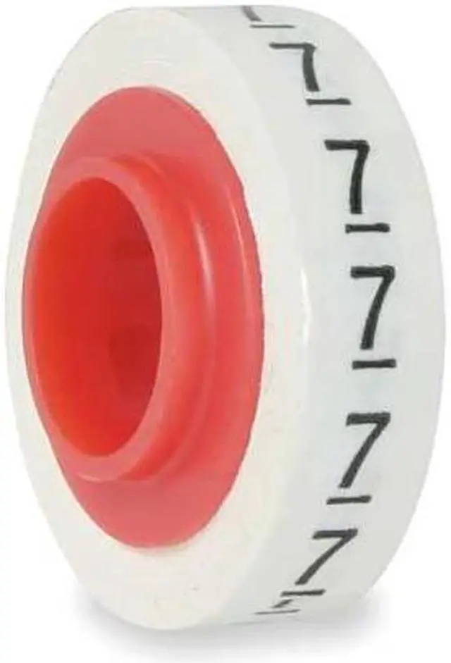 Wire Marker Tape Refill, Preprinted, Legend 7, Color Black on White, Temp. Range -40 Degrees to 250 Degrees F, Label Width 0.22 in, Label Height 0.003 in, Marker Attachment Style Self-Adhesive, No. of Labels 576, Label Material Polyester Film, Background Color White, Legend Color Black, Uses Dispenser Mfr. No. STD, Rolls per Legend 1, Fits Wire Dia. 6/0 to 24 AWG. This item has been restricted from sale in the following state (s): []