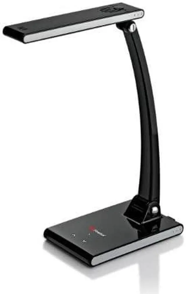 | features | olarizing light filter technology reduces glare on surfaces which can help improve reading efficiency. Longer life (lasts up to 40,000 hours) and energy efficient LED bulb is anti-flicker and does not produce ultraviolet light. Easy touch sensor controls 7 brightness levels to customize your lighting needs from a simple task light to fine detail work. Highly adjustable with a slim and stable anti-skid base allows you to position light where you need it. Modern and stylish design in black to fit your office or home. |