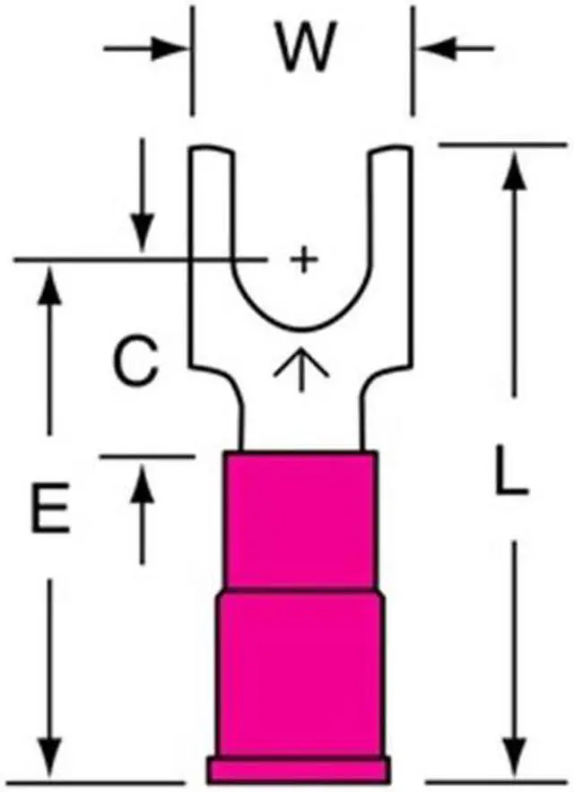 Fork Terminal, Insulation Color Red, Maximum Operating Temperature 221 Degrees F, Maximum Voltage 600 V, Maximum Wire Size 18 AWG, Stud Size #8, Seam Style Butted, Standards CSA Certified, UL Listed, Connection Material Copper, Connection Type Crimp, Minimum Wire Size 22 AWG, Overall Length 0.85 in, Package Quantity 100. This item has been restricted from sale in the following state (s): []