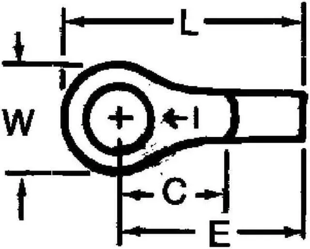 Ring Terminal, Insulation Color Bare, Maximum Operating Temperature 347 Degrees F, Maximum Voltage 600 V, Minimum Wire Size 22 AWG, Maximum Wire Size 18 AWG, Termination Style Crimp, Tongue Width 0.25 in, Contact Material Copper, Standards CSA Certified, UL Listed, Insulation Type Non-Insulated, Overall Length 0.7 in, Package Quantity 100