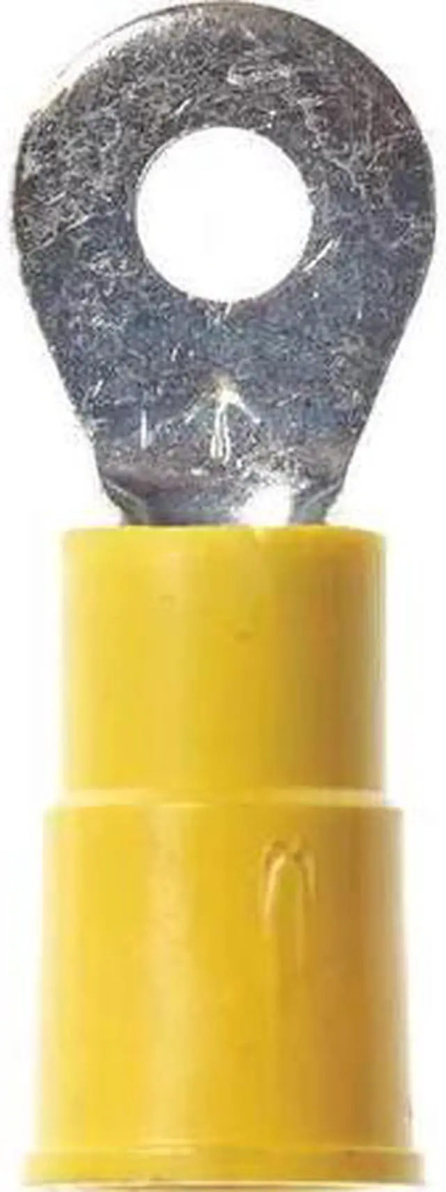 Ring Terminal, Insulation Color Yellow, Insulation Coverage Partial Coverage, Insulation Material Vinyl, Maximum Operating Temperature 221 Degrees F, Maximum Voltage 1, 000 V, Minimum Wire Size 12 AWG, Maximum Wire Size 10 AWG, Termination Style Crimp, Tongue Width 0.38 in, Contact Finish Tin, Contact Material Copper, UL 94 Flammability Rating V-2, Standards CSA, UL, Barrel Style Funnel Entry, Insulation Type Self-Insulated, Minimum Operating Temperature -40 Degrees F, Overall Length 1.03 in. This item has been restricted from sale in the following state (s): []