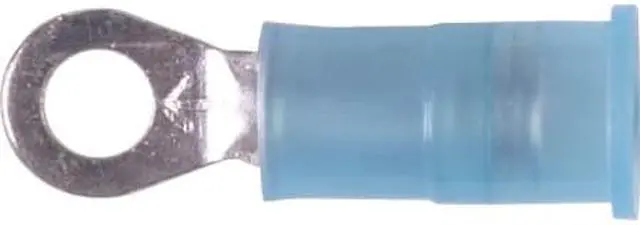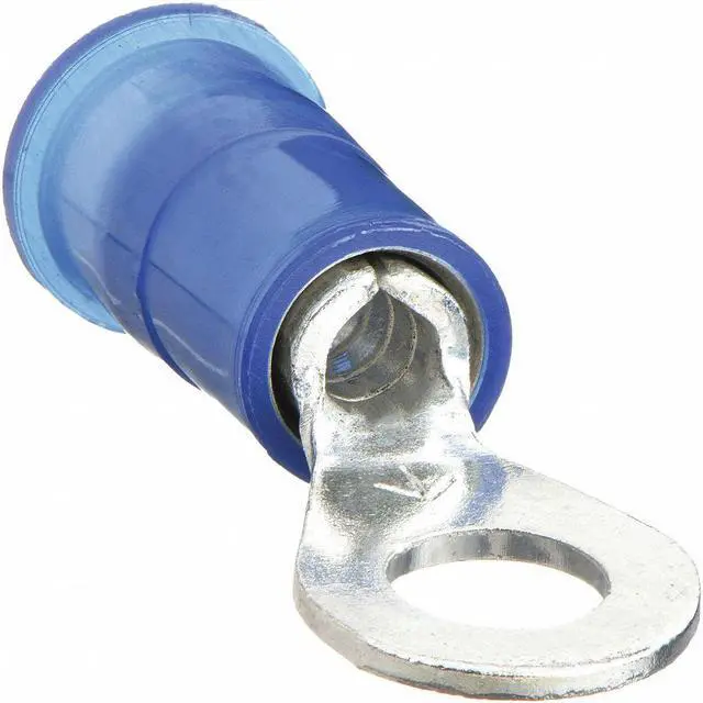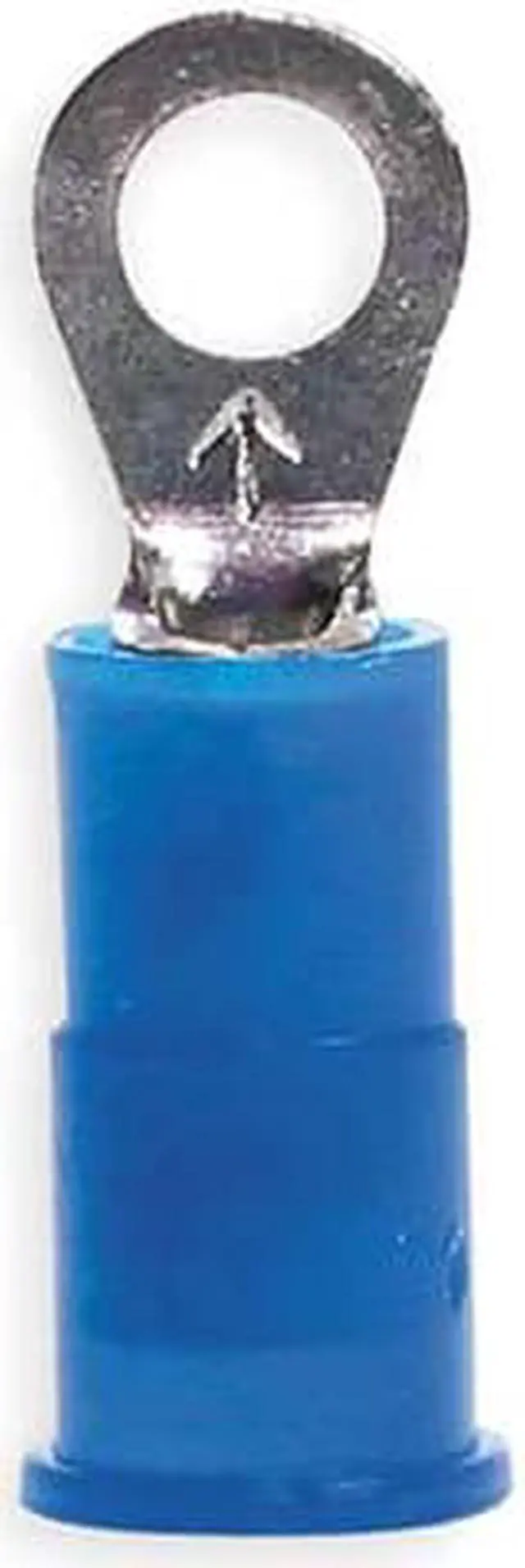 Ring Terminal, Insulation Type Nylon, Stud Size #6, Wire Range 16 to 14 AWG, Insulation Color Blue, Seam Brazed, Max. Temp. 221 Degrees F, Max. Voltage 600 V, Overall Length 0.81 in, Connection Material Copper, Standards CSA Certified, UL Listed, Terminal Connection Crimp, Tongue Width - Wire Connector 0.25 in, Package Quantity 100. This item has been restricted from sale in the following state (s): []