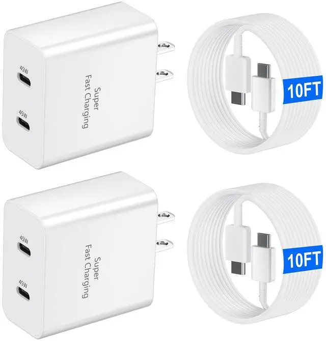 45W USB-C Super Fast Charger, 2-Port 45 Watt Type C Charger Fast Charging Block with 10FT USB C Cable Cord for Samsung Galaxy S25 Ultra/S25+/S25/S24/S23 Ultra/S23+/S22 Ultra/S22+/S20 Ultra-White