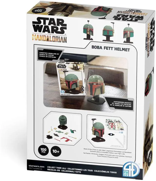 4D Precision Model Kits introduces to you the official 4D The Mandalorian Boba Fett Helmet. Manufactured with our Precision Core-Gate Technology, each model is an Official Star Wars Licensed Product. 4D and Lucasfilm has officially partnered together to bring you the most detailed 4D kits we have manufactured to date. With our Precision Core-Gate Technology our modeling sheets are manufactured with 1.85 mm thickness. All color specs are approved through pantone references to match the true likeness and color. The final assembled product is a real-life collectible model for any fan. A full instruction booklet is included. A tube of 6 ml modeling glue is also provided as small amounts are required during the final steps of the assembly. Additional stands are included for final display purposes. Size: 6.57" x 5.83" x 10.63" 100 pcs Assembly Time: 4 hours Material: Core-Gate Paper Technology
