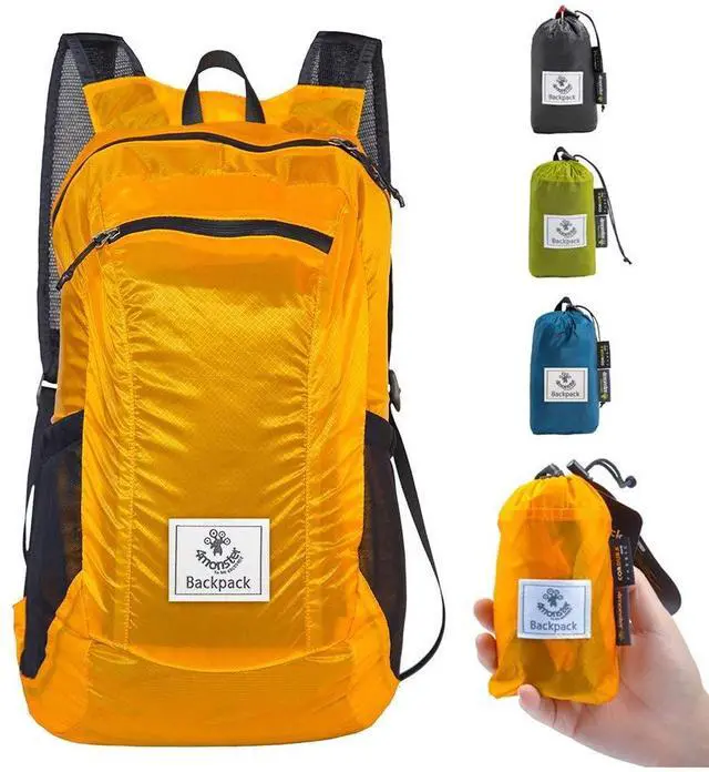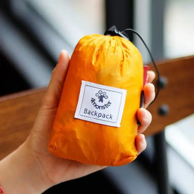 A backpack lightweight design and materials that fit into your pocket when folded.
