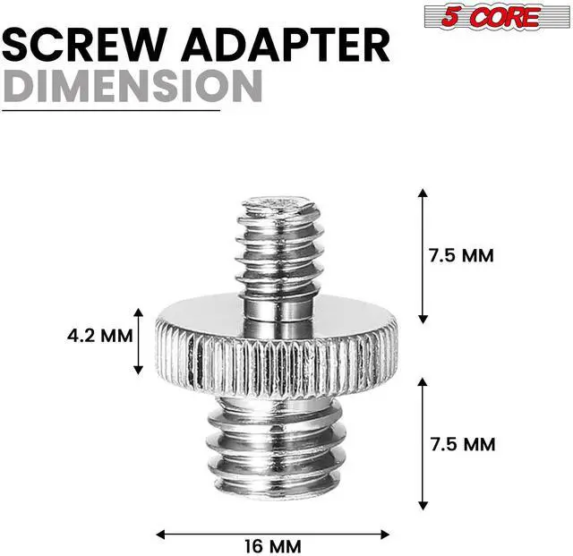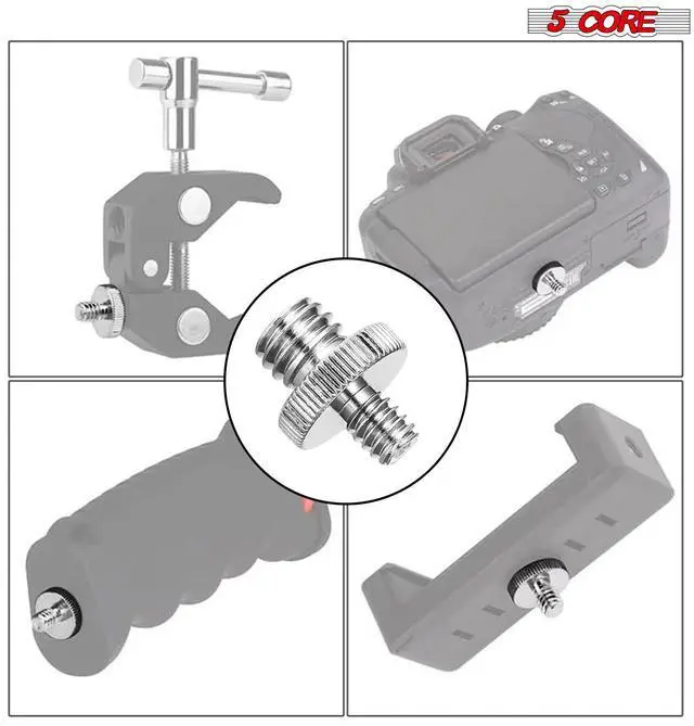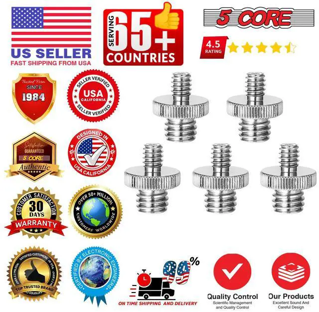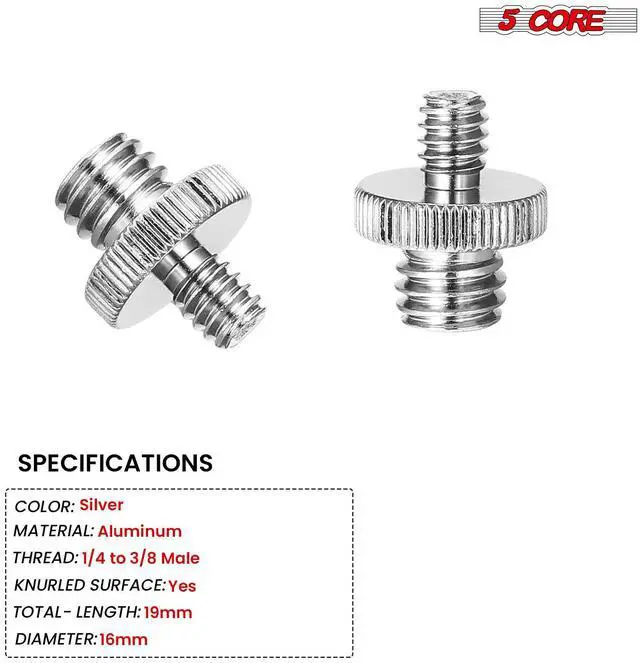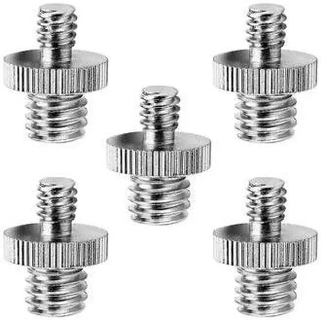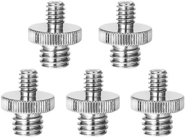 Upgrade your photography gear with our 1/4 inch male to 3/8 male tripod adapter. Made from durable aluminum, it withstands rigorous use while securely supporting your camera or accessories. The anti-slip, knurled surface ensures excellent grip for effortless installation and removal. This universal adapter meets international thread standards and is perfect for SLR cameras, tripods, monopods, telescopes, and more. Its corrosion-resistant design ensures long-term reliability in any environment. The small, lightweight design with a smooth, professional finish adds convenience and style. Each package includes five adapters, perfect for upgrades or replacements.