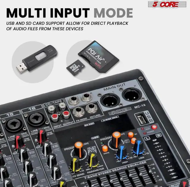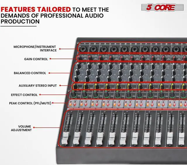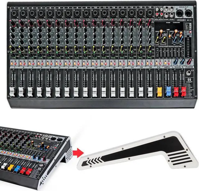 Elevate your audio experience with our cutting-edge 16 channel DJ audio mixer. Featuring 16 mono channels, this music mixer delivers unparalleled versatility for recording, podcasting, live mixing, and more. With built-in 99DSP effects and 48v phantom power.