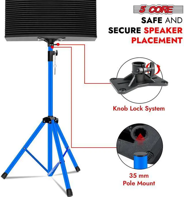 The anti-slip design with tripod legs and non-slip rubber caps ensures superior stability. Secure your setup with the knob-style tension locking system and sturdy metal pin for safe raising and lowering. This heavy duty speaker stand guarantees reliable performance for every event.