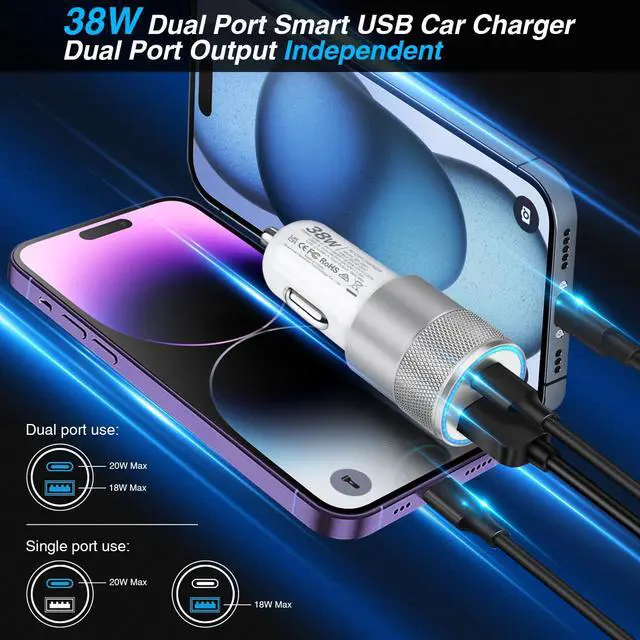 car charger usb c cigarette lighter adapter cargador para carro fast charging type phone accessories dual port plug block multi outlet charge cell interior A usb-c android usbc 13 3.0 12 auto super multiple power socket electronic gadgets mount pd automobile block double multiport 5pack quick station vehicle 20w retractable 16 15 16e