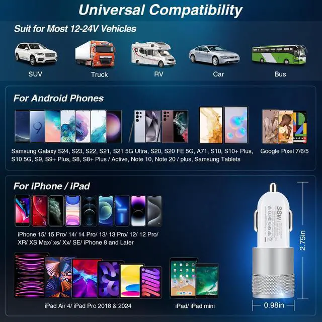 | Compatible Phone Models | Samsung Galaxy A16, A25, A15, A05, A24 5G, A54, A34, A14, A14 5G, A73 5G, A53 5G, A33 5G, A01, A10e, A11, A20, A20s, A21, A30, A30s, A40, A40s, A5 2017, A50, A50s, A51, A51 5G, A60, A6s, A7 2017, A70, A70s, A71 5G, A8 Plus 2018, A8 Star, A80, A8s, A9 Star, A90 5G, A9s and more A-series, Samsung Galaxy S25, S25+, S25 Ultra, S24, S24+, S24 Ultra, S23 FE, S23, S23+, S23 ultra, S20 FE 2022, S22 5G, S22+ 5G, S22 Ultra 5G, S21+, S21 Ultra 5G, S21, S20 Ultra 5G, S20 FE, S20+, S10 Plus, S10+, S10e, S10 5G, S10 Lite, S9, S9+, S8, and more S-Series, iPhone 16e/16/16 plus/16 pro/16 pro max/15 /15 Pro /15 Pro Max /15 Plus /14 /14 Pro /14 Pro Max /14 Plus, iPhone 13 /13 Pro /13 Pro Max /13 mini /12/12 Mini/12 Pro/12 Pro Max/SE/11 Pro Max/11 Pro/11/XR/XS Max/XS/X/8 Plus/8/7 Plus/7/SE/6S Plus/6/5C/5S/5 |