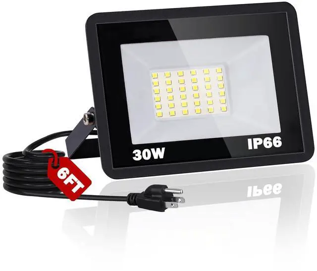 30W LED Flood Light Outdoor, IP66 Waterproof 5000K Daylight White 3600LM Super Brighter Work Light with 6ft Cord and Plug, Exterior Floodlight Security Lights for Yard Garage Stadium Garden