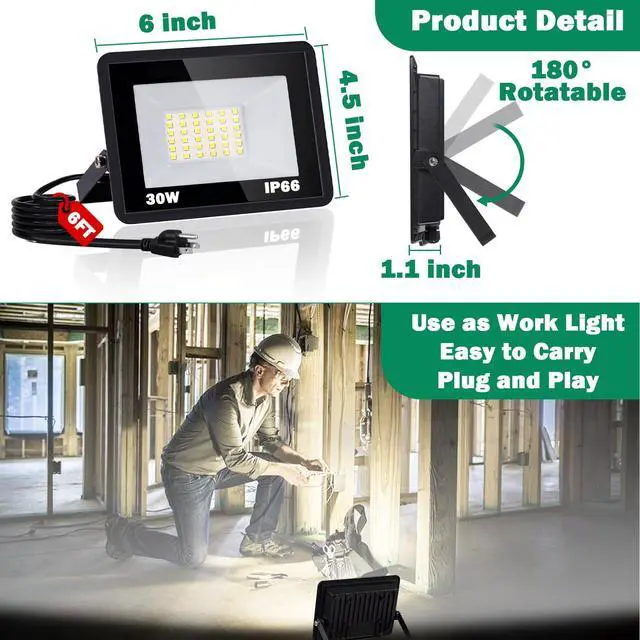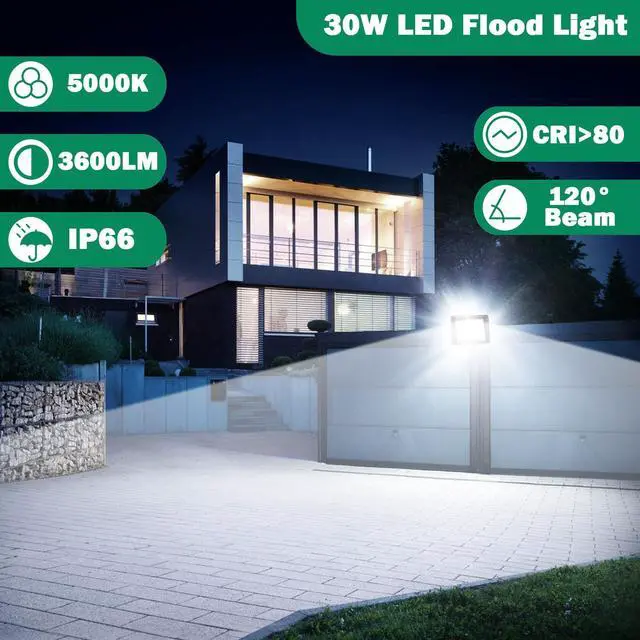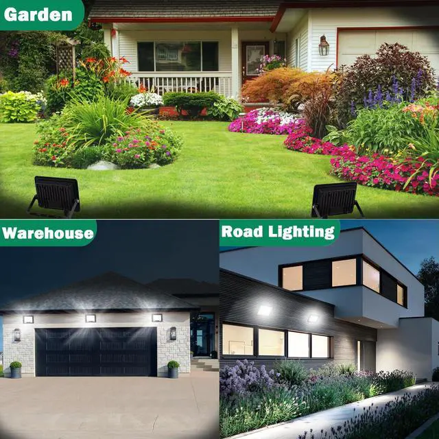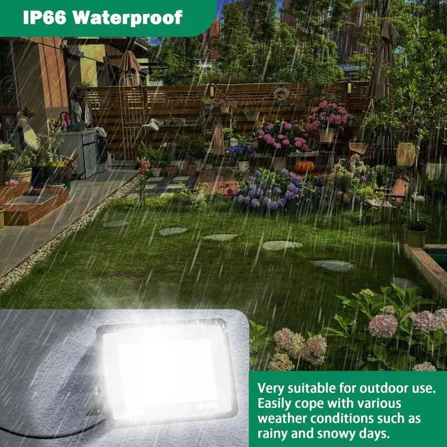 IP66 Waterproof: This outdoor LED flood light has IP66 waterproof level and can be used indoors and outdoors. Excellent lighting to meet your residential or commercial needs, can be used as outdoor floodlights for backyard, doorway, garden, patio, swimming pool, warehouse, garage, factory, work light, playground, sports fields, lawn, church, outdoor parties, etc