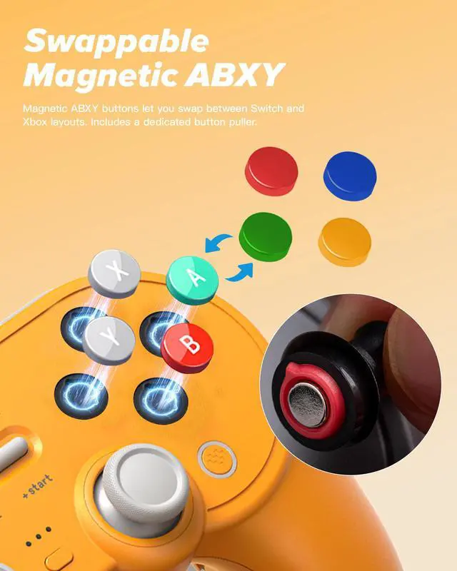 Featuring swappable magnetic ABXY buttons, you can switch between Switch and Xbox layouts in seconds. Precision TMR joysticks with a 12-bit ADC sampling chip deliver smooth, accurate movement, while the trigger mode switch lets you choose between linear Hall Effect triggers and tactile triggers for the perfect feel in any game.