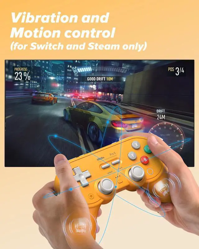 Advanced functions like vibration and motion control (Switch & Steam), turbo mode, Ultimate Software V2 support, and wake-on-shake (except Switch 2) give you a competitive edge across every platform.