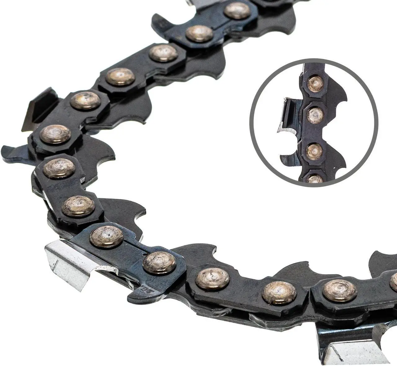 Chainsaw Chain Specs - 18 Inch; 62 Drive Links; Pitch 3/8 Inch; Gauge .050 Inch; Full Chisel; Includes Safety Bumper Link; Chain Material: 68CrNiMo33 Steel; Rivet Material: GCr15 Steel