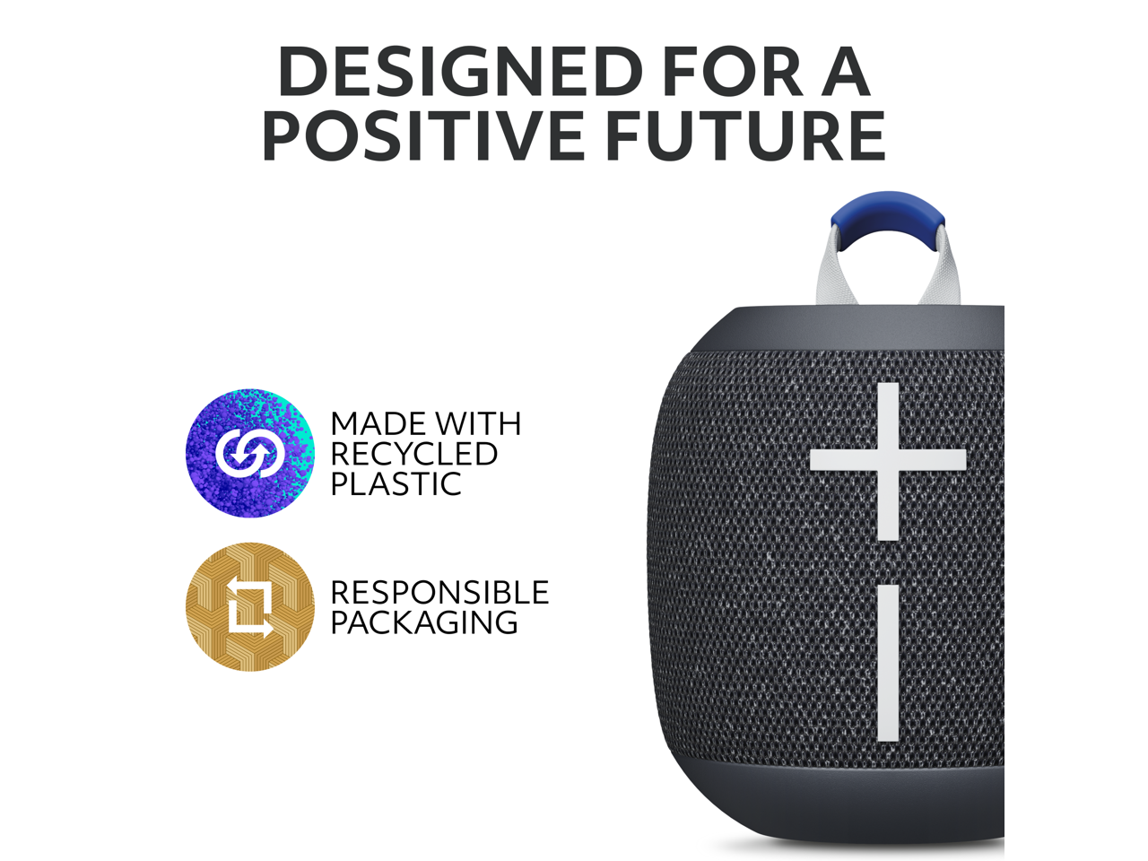 - That bigger 360° sound in a petite package. Boosted sound for 14 hours of playtime.