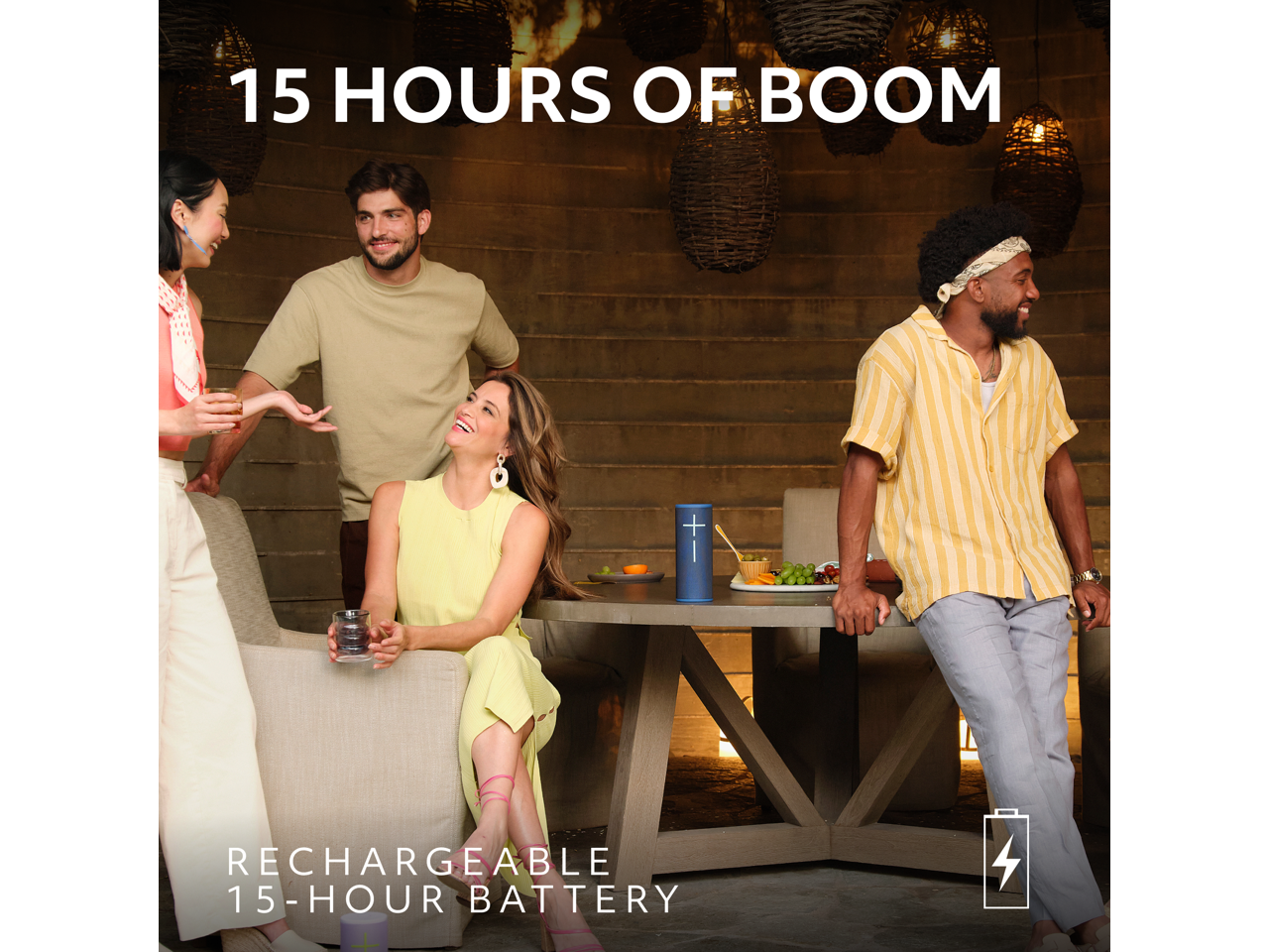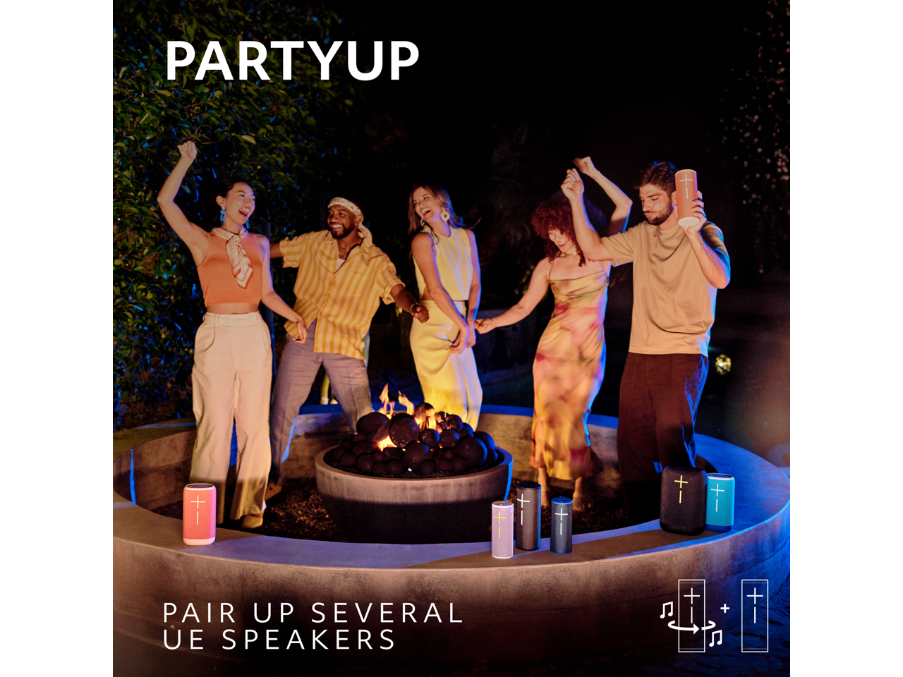 - Use PartyUp on the Ultimate Ears Boom app to pair several BOOM, MEGABOOM, EVERBOOM, EPICBOOM, and HYPERBOOM portable Bluetooth speakers, creating the ultimate surround sound experience.