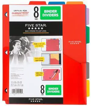 Five Star 8-Tab Binder Dividers: 9-3/4 in. x 0.319 yds. (Assorted Colors) *8-pack