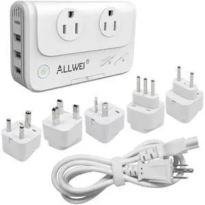 ALLWEI International Travel Adapter 220V to 110V Power Voltage Converter for Hair Straightener/Curling Iron, Universal Power Plug Adapter UK, US, AU, EU, IT, India (White)