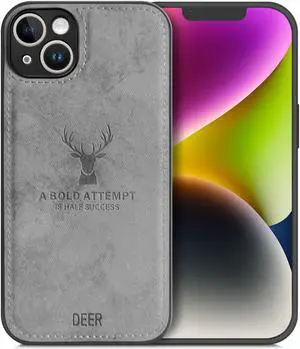 Soft Texture Deer Patterned TPU Cloth Protective Case for iPhone 14, Dirt-resistant, Anti-Shock, Anti-Fingerprint, Full Body Protective Gray