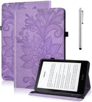 TUOLISG Case for All-New 7" Kindle Paperwhite 12th Generation 2025/2024 & Kindle Colorsoft Signature Edition 2024, Embossed Lace Premium PU Leather Case with Card Slot/Pen Holder, Purple