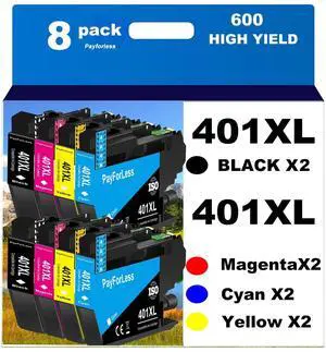 PayForLess LC401XL Ink Cartridges for Brother Printer Compatible LC401 Ink Cartridges for MFC-J1010DW MFC-J1012DW MFC-J1170DW Printer 8 Pack (2 Black, 2 Cyan, 2 Magenta, 2 Yellow)