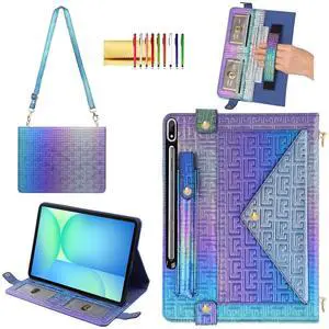 Shiny Case for Samsung Galaxy Tab S10 FE+/S10 FE Plus 13.1", Techcircle Crossbody Iridescent Folio Stand Wallet Case with Pen Holder+Card Slots+Hand Strap+Shoulder Strap, Shiny Indigo