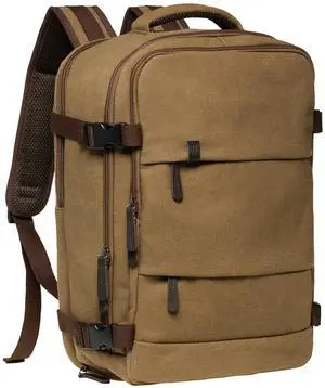 KAUKKO Canvas Travel Rucksack, Large Capacity Carry On Bag with Shoe Pouch and 15.6 inch Laptop Compartment, Flight Approved Outdoor 40L Luggage Weekender Bag, 12-KHAKI