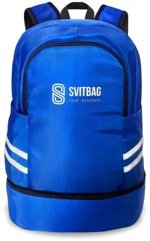 Svitbag Blue Large Waterproof Sports Backpack 35.5L Capacity Polyester Fabric Reflective Side Stripes, Multiple Compartments, Laptop and Phone Pockets - Best for Gym
