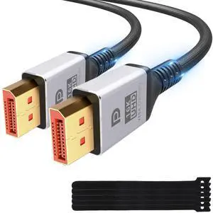 VESA Certified 16K DisplayPort Cable 2.1 12 Ft, 80Gbps [16K@60Hz, 8K@120Hz, 4K@240Hz@165Hz@144Hz] HDR10, HDCP DSC 1.2a 3D,Braided eARC DP 2.0/1.4 Cord FreeSync G-Sync for Gaming/PC/TV/Monitor/Graphics